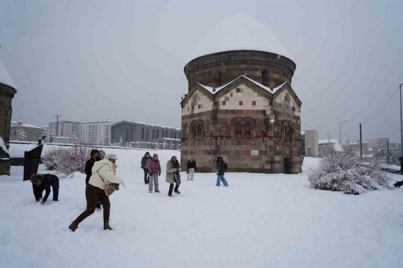 Son yıllarda özellikle kış turizmi noktasında popüler olan ve yüzbinlerce insanın kayak yapmak için geldiği Palandöken Kayak Merkezi’ne sahip olan Erzurum; barındırdığı zengin gastronomisi, kadim kültürü ve tarihi değerleriyle yerli-yabancı turistleri kendine çekmeye devam ediyor. Bunlardan birisi de Belçikalı turist kafilesiydi. Çıktıkları Anadolu gezisinde Erzurum’da mola veren Belçikalı turistlerin, kentin tarihi ve kültürel dokusuyla birlikte yağan kara hayranlığı adeta coşkuya döndü. Çifte Minareli Medrese’yi ziyaret eden turistler burada kartopu savaşı yaptılar. Üçkümbetler’e doğru kar yağışı eşliğinde yürüyen yabancı turistler burada yokuşta kalan otomobile el atarak saplandığı yerden çıkardılar. Sürücü kendilerine teşekkür etti.
