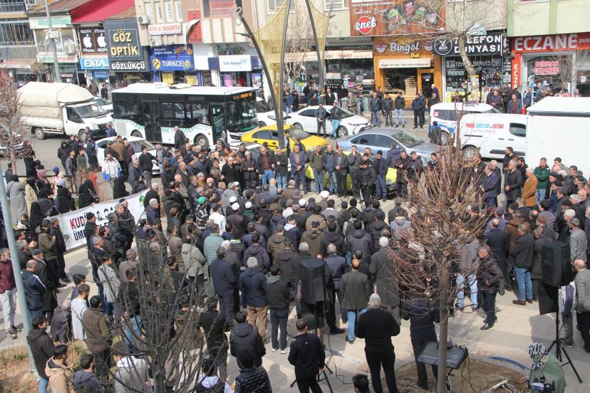 Bingöl’de cuma namazı çıkışı Ulu Camii önünde bir araya gelen çok sayıda vatandaş, işgal rejimini tel'in etti.