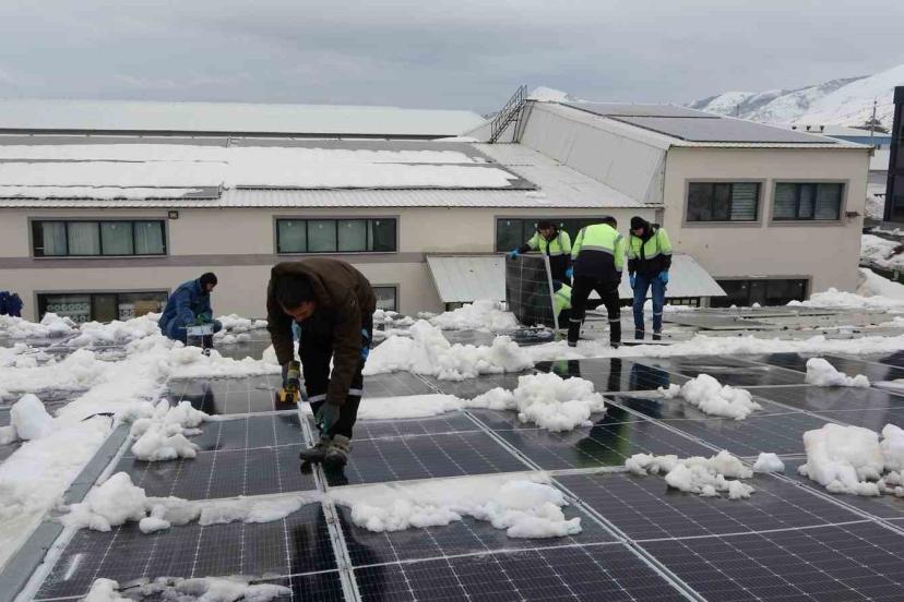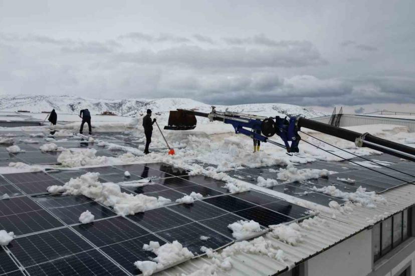 Bitlis Organize Sanayi Bölgesi’ndeki bazı fabrikalarda yoğun kar yükü, çatıdaki güneş enerjisi panellerinde hasara yol açtı. İşletme sahipleri, hem mevcut panellerin korunması hem de zarar görenlerin yenilenmesi için ilginç bir yöntem bularak çalışma başlattı. Yoğun kar birikimi nedeniyle insan gücüyle yapılması planlanan temizlik, vinç ucuna bağlanan özel bir aparat sayesinde kısa sürede tamamlanacak. Normalde 10 gün sürecek temizlik işlemi, vinç ve aparat ile yalnızca 2 günde gerçekleştirilecek.