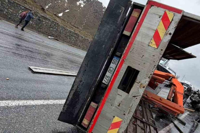 Bitlis’te iş makinesi ile tır çarpıştı: 1’i ağır 3 yaralı