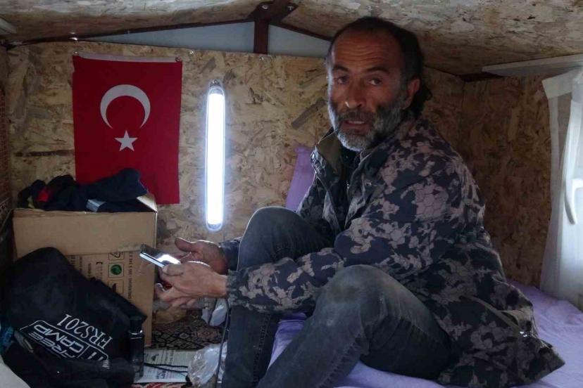 Kendi imkanlarıyla hazırladığı karavanı barınma amacıyla kullanıldığını belirten Yıldız, "Bu aracı kendim yaptım. İçinde sadece yatıp kalkıyorum. Başka bir imkanı yok ama dışarıda kalmaktansa burada kalıyorum" diye konuştu.