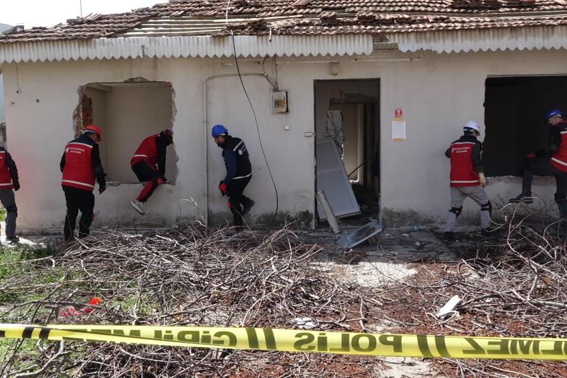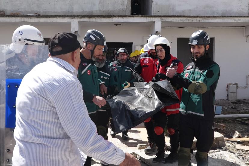 Enkaz alanında çıkan yangına itfaiye ekipleri müdahale ederken, bu sırada enkaz altında kalan yakınlarını görmek isteyen vatandaşların bölgeye girmesi çevik kuvvet ekiplerince engellendi. Yaklaşık 1 saat süren tatbikat kapsamında enkazdan yaralı kurtarma, yangın söndürme, kimyasal sızıntıya müdahale, tahliye ve barınma süreçleri başarıyla gerçekleştirildi. Tatbikatta afet sonrası destek çalışmaları da uygulandı. Toplanma alanlarına yönlendirilen vatandaşların kayıtları yapıldı, çadırlar kuruldu, iaşe ve ibate hizmetleri sağlandı. Psikososyal destek, sağlık ve enerji ekipleri görev aldı. GSM şirketleri mobil baz istasyonu kurarak iletişim desteği sundu.