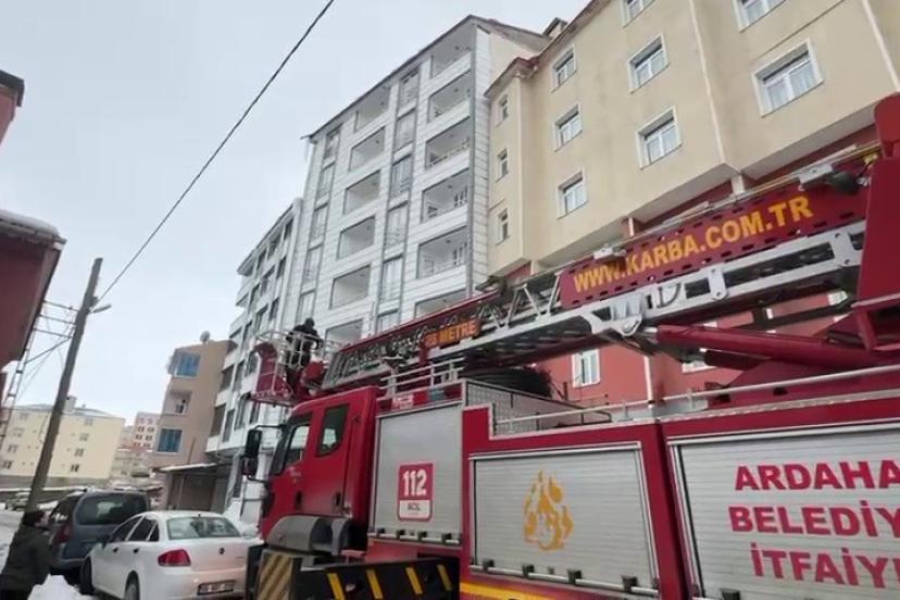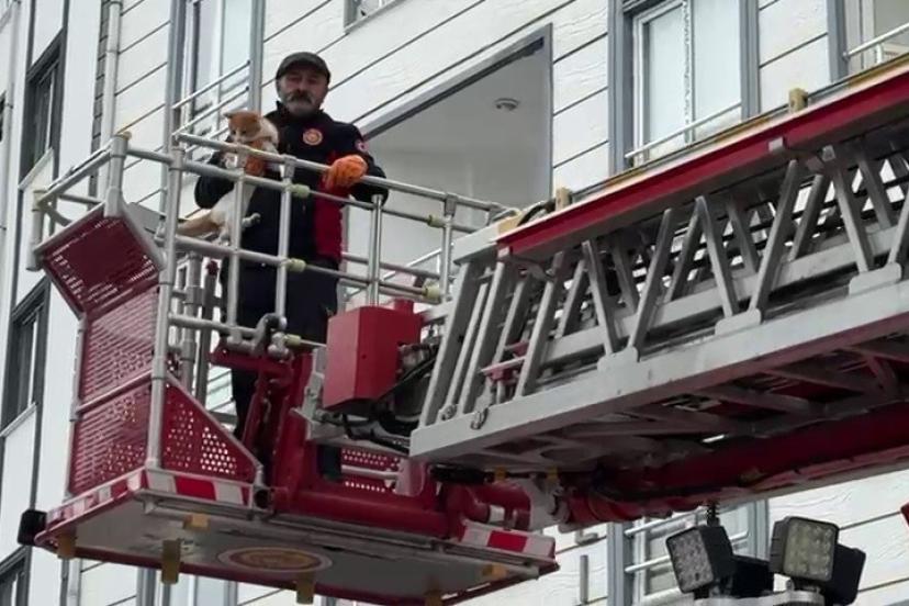 Ardahan’da bina çatısında mahsur kalan kedi itfaiye ekiplerince kurtarıldı.