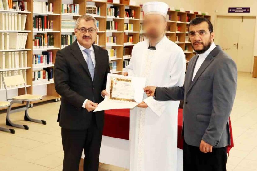 Erzurum’da cezaevinde hafızlık eğitimini başarıyla tamamlayan hükümlüler, düzenlenen törenle cübbelerini giyerek icazetlerini aldılar.