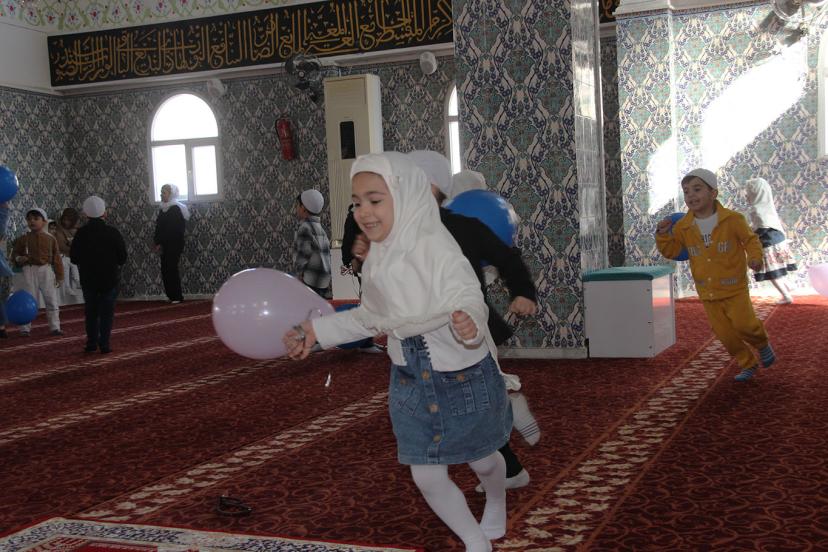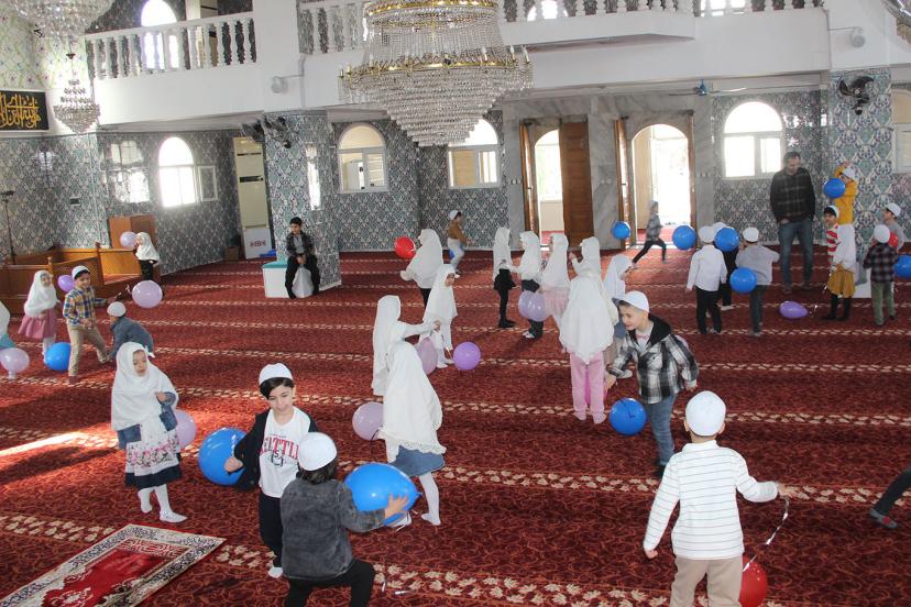 Camiye gelen çocuklar ezberledikleri ayetleri ve duaları okudu. Çocuklar, camide kaldıkları süre boyunca çeşitli etkinliklerle doyasıya eğlendi.