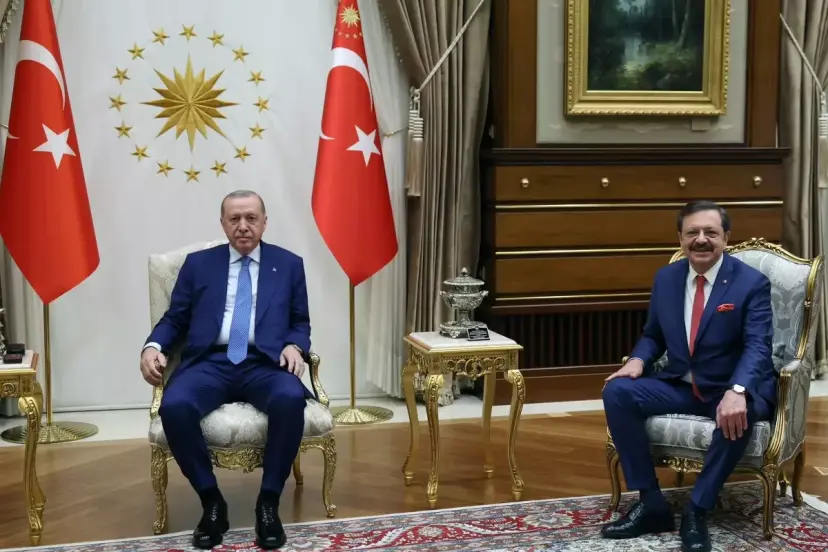 Cumhurbaşkanı Recep Tayyip Erdoğan, Türkiye Odalar ve Borsalar Birliği (TOBB) Başkanı Rifat Hisarcıklıoğlu'nu Cumhurbaşkanlığı Külliyesinde kabul etti. Kabul sırasında fotoğraflar paylaşıldı, görüşmenin detayları henüz açıklanmadı.