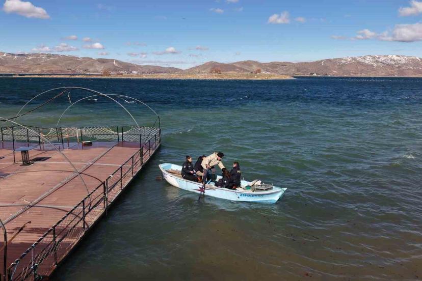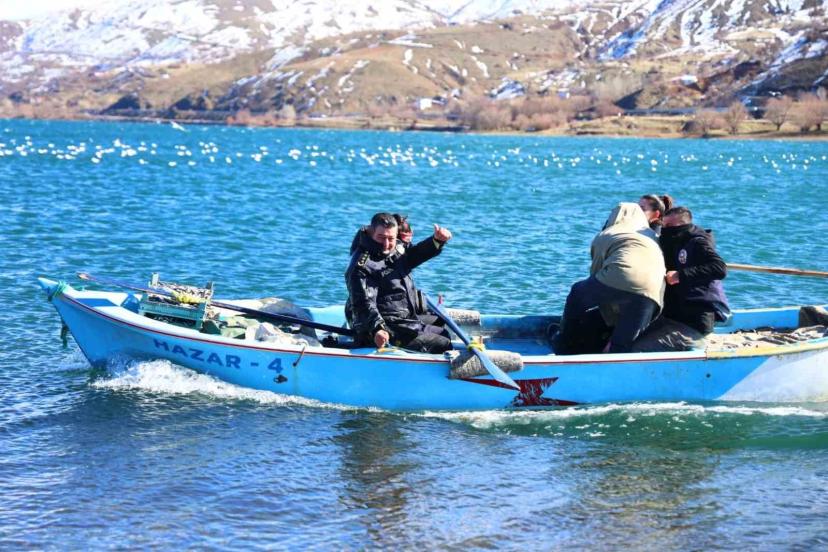 Elazığ Hazar Gölü’ndeki Tavşan Adası’nın sakinleri, çetin kış şartlarında yiyecek bulamayınca devreye polis ekipleri girdi. Ekipler, dalgalara rağmen adaya ulaşarak tavşanları sebzeyle, aç kalan martıları ise balıkla besledi.