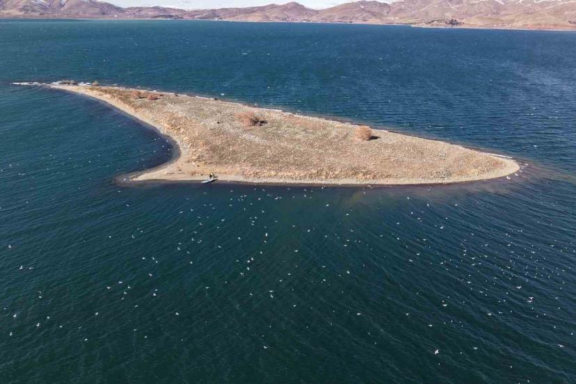 Elazığ’ın Sivrice ilçesinde Doğu’nun gizli denizi olarak bilinen Hazar Gölü ortasında yer alan Tavşan Adası’nın sevimli sakinleri ve binlerce martısı ile dikkat çekiyor. Hazar Gölü’nde bulunan 35 dönümlük ada 21 yıldır tavşanlara ev sahipliği yaparken yıllar önce bırakılan tavşanların çoğalmasıyla adada şu anda 200’ün üzerinde tavşan olduğu biliniyor. Tavşanların yanı sıra 68 kuş türüne de ev sahipliği yapan ada çetin kış şartları nedeniyle zor günler geçiriyor. Adada yaşayan tavşanlar ve hava şartları nedeniyle balıkların derinlere inmesi sonucu yiyecek bulamayan martılar için Elazığ İl Emniyet Müdürlüğü Sivrice İlçe Emniyet Müdürlüğü ekipleri harekete geçti. Ekipler, zorlu hava şartlarına rağmen sandallarla adaya çıkarak, temin edilen marul lahana ve havuçları adaya bıraktı. Adadaki kuşları ve martıları da unutmayan emniyet güçleri, özellikle balıkların derine inmesiyle beslenemeyen martılar için yanlarında getirdikleri kasa kasa balıkları ve yemleri adanın belirli noktalarına bıraktı.