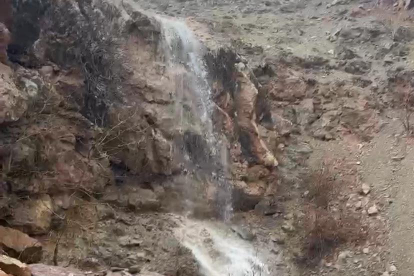 Elazığ’ın Arıcak ilçesine bağlı Kambertepe köyünde yağmur suları kayalıklardan süzülerek adeta doğal şelale oluşturdu.