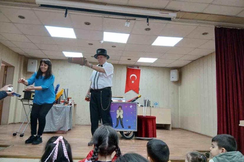 Emekli polis memuru memleketinde öğrencilere sihirbaz gösterisiyle unutulmaz anlar yaşattı