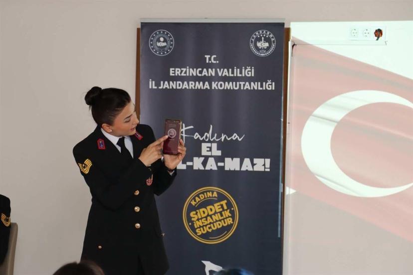 Erzincan İl Jandarma Komutanlığı tarafından kadın öğrencilere yönelik "Kadına Yönelik Şiddetle Mücadele" kapsamında bilgilendirme faaliyeti gerçekleştirildi.