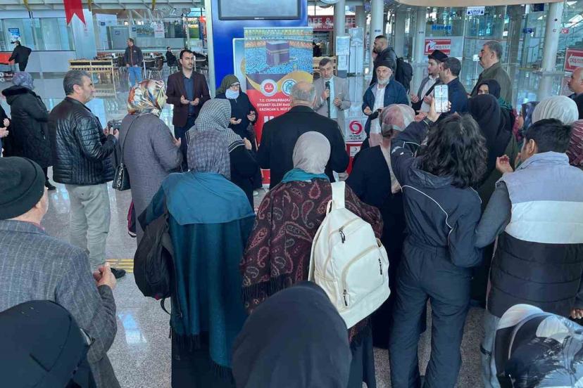 Program kapsamında umre ibadetini yerine getirmek üzere kutsal topraklara gidecek olan vatandaşlar, yapılan duaların ardından yolcu edildi.