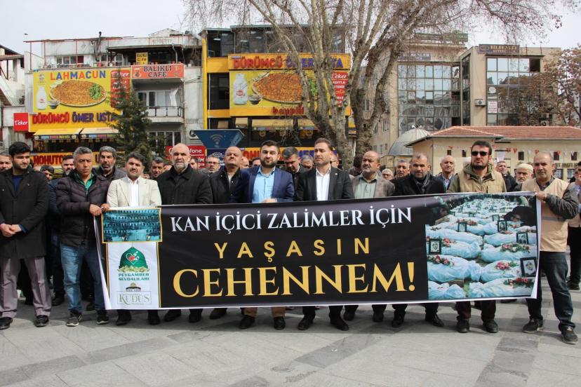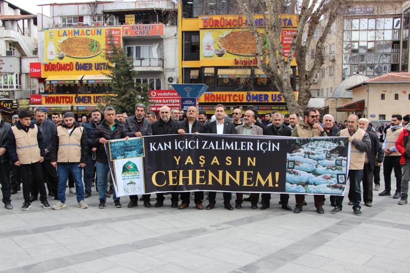 Gaziantep Kudüs Platformu, Cuma namazı sonrası Balıklı Parkı'nda bir araya gelerek ABD ve işgal rejiminin İran'a saldırılarını kınayan kitlesel basın açıklaması düzenledi.
