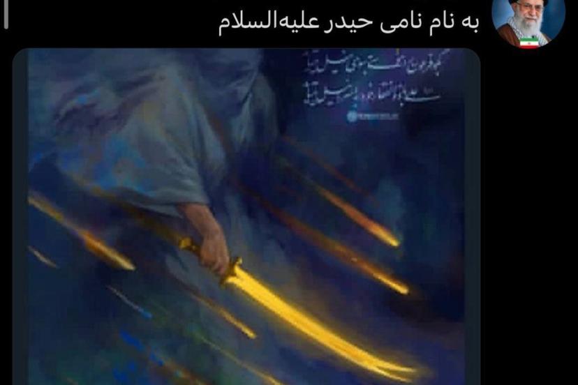 Paylaşımında Hazreti Ali ve Zülfikar kılıcına atıfta bulunan Hamanei, "Haydar'ın adıyla…" ifadesine yer verdi.