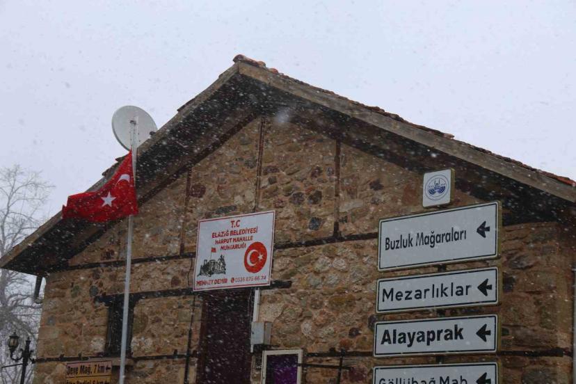 Elazığ’ın 4 bin yıllık tarihi Harput Mahallesi’nde etkisini artıran kar yağışı, tarihi mekanları kısmen beyaza bürüdü.