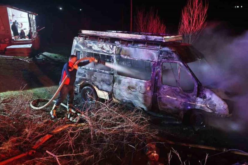 Iğdır’ın Tuzluca ilçesine bağlı Katırlı köyünde, muhtar Hanifi Kızıltaş’a ait köy servisi ve öğrenci servisi olarak da kullanılan minibüs gece saatlerinde henüz bilinmeyen bir nedenle alev aldı. Kısa sürede büyüyen yangın çevrede paniğe neden oldu. İhbar üzerine olay yerine sevk edilen itfaiye ekipleri yangına hızlı şekilde müdahale ederek kontrol altına aldı. Olayda can kaybı ya da yaralanma yaşanmazken, araç kullanılamaz hale geldi. Yangının çıkış nedenine ilişkin inceleme başlatılırken, olayda kundaklama ihtimali üzerinde durulduğu öğrenildi. Yetkililer, yangınla ilgili geniş çaplı soruşturma başlattı.