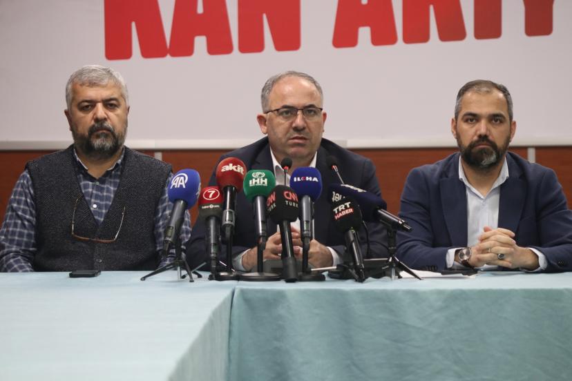 İHH Genel Merkezi'nde, "Coğrafyamızdan Kan Akıyor" başlığıyla gerçekleştirilen basın toplantısına, yaklaşık 20 sivil toplum kuruluşu temsilcisi katılım sağladı.