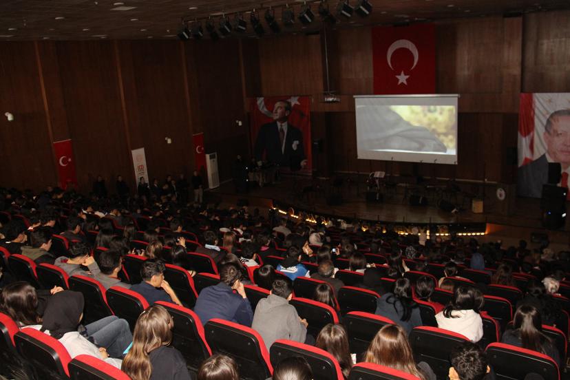 Programın devamında, Mehmet Akif Ersoy'un hayatı, milli mücadele dönemindeki rolü ve İstiklal Marşı'nın yazılış sürecini anlatan sinevizyon gösterimi gerçekleştirildi.