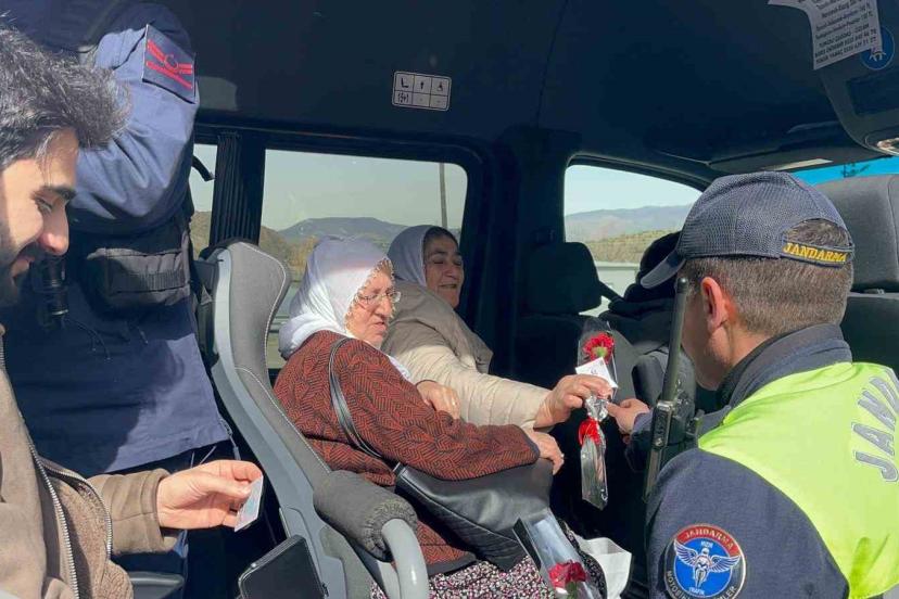Jandarma kadınlara karanfil verdi