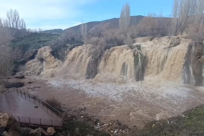 Van’da son günlerde etkili olan sağanak yağışlar ve yüksek kesimlerdeki karların erimesiyle Muradiye Şelalesi coşmaya başladı.