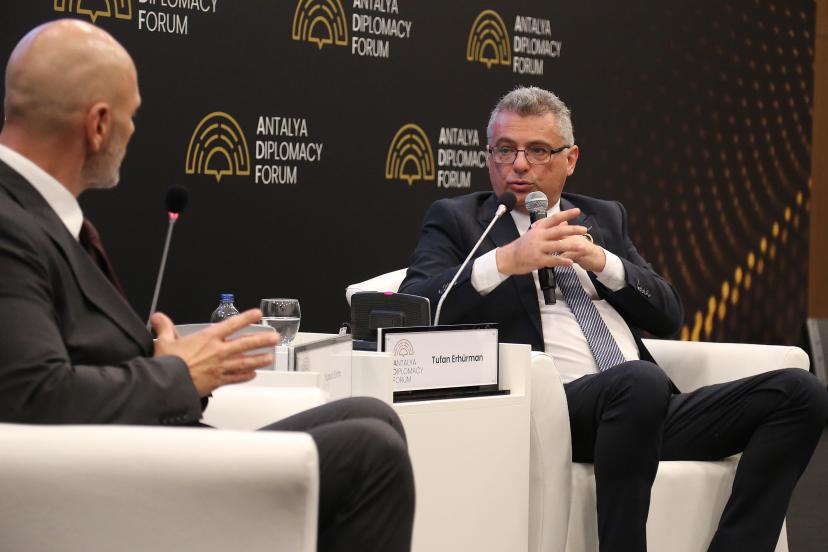 KKTC Cumhurbaşkanı Tufan Erhürman, Antalya Diplomasi Forumu'nda (ADF) panel düzenledi. Erhürman, konuşması sırasında salondaki ses sisteminde teknik sorun yaşanması nedeniyle konuşmasının bir bölümünü de ayakta mikrofonsuz sürdürdü. Konuşmasının başında kendini tanıtan ve Türkiye Cumhuriyeti ile yakın ilişkiler içinde bulunduğunu ve siyasetin içinden gelen biri olduğunu belirten Erhürman, yaptığı tüm açıklamalarda, 'Bugüne kadar Kıbrıs'ta bütün cumhurbaşkanları, bütün liderler Kıbrıs sorununu ve Kuzey Kıbrıs'ın dış politikasını elbette Türkiye Cumhuriyeti'yle yakın istişare ve koordinasyon içerisinde yürüttüler. Ben de bunu bu şekilde yürütecek olan liderlerden biriyim' dediğini söyledi. 6 aylık sürede de bunun böyle olduğunu belirten Erhürman, “Daha da yakından birbirimizi tanıyacağımızdan eminim, şüphe olarak dile getirilen şeylerin hiçbirinin realite ile bağdaşmadığını bir genelleme olarak söyleyeyim" dedi.
