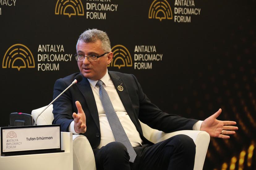 KKTC Cumhurbaşkanı Tufan Erhürman, Antalya Diplomasi Forumu'nda (ADF) panel düzenledi. Erhürman, konuşması sırasında salondaki ses sisteminde teknik sorun yaşanması nedeniyle konuşmasının bir bölümünü de ayakta mikrofonsuz sürdürdü. Konuşmasının başında kendini tanıtan ve Türkiye Cumhuriyeti ile yakın ilişkiler içinde bulunduğunu ve siyasetin içinden gelen biri olduğunu belirten Erhürman, yaptığı tüm açıklamalarda, 'Bugüne kadar Kıbrıs'ta bütün cumhurbaşkanları, bütün liderler Kıbrıs sorununu ve Kuzey Kıbrıs'ın dış politikasını elbette Türkiye Cumhuriyeti'yle yakın istişare ve koordinasyon içerisinde yürüttüler. Ben de bunu bu şekilde yürütecek olan liderlerden biriyim' dediğini söyledi. 6 aylık sürede de bunun böyle olduğunu belirten Erhürman, “Daha da yakından birbirimizi tanıyacağımızdan eminim, şüphe olarak dile getirilen şeylerin hiçbirinin realite ile bağdaşmadığını bir genelleme olarak söyleyeyim" dedi.