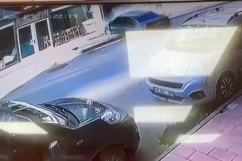 Kaza anı ise bir iş yerinin güvenlik kamerasına saniye saniye yansıdı.