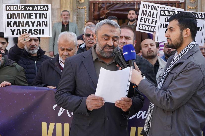 Kudüs’ün yalnızca Filistin halkının değil, bütün Müslümanların ve tüm insanlığın ortak mirası olduğunu vurgulayan Celal Ödemiş, “Küresel barışın anahtarı Kudüs ve Aksa’nın özgürlüğüdür. Bugün burada sadece bir bölgenin değil, tüm insanlığın vicdan durağı olan Kudüs, Mescid-i Aksa ve Gazze’de yaşanan soykırıma dur demek için toplandık. Mescid-i Aksa Müslümanların ilk kıblesi ve mukaddes mabedlerinden biridir. Ancak bugün Kudüs, Mescid-i Aksa ve Gazze, siyonist işgal rejiminin sistematik saldırıları ve yayılmacı politikaları altında ağır bir kuşatma yaşamaktadır” şeklinde konuştu.