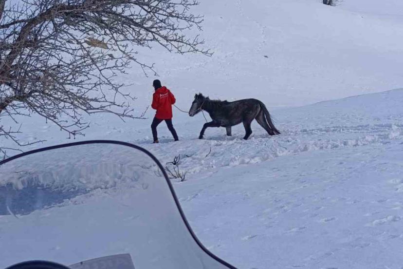 Bingöl’de dağda karlar arasında mahsur kalan ve kurt saldırısına uğrayarak yaralanan at, AKUT Bingöl ekibi tarafından kurtarıldı.