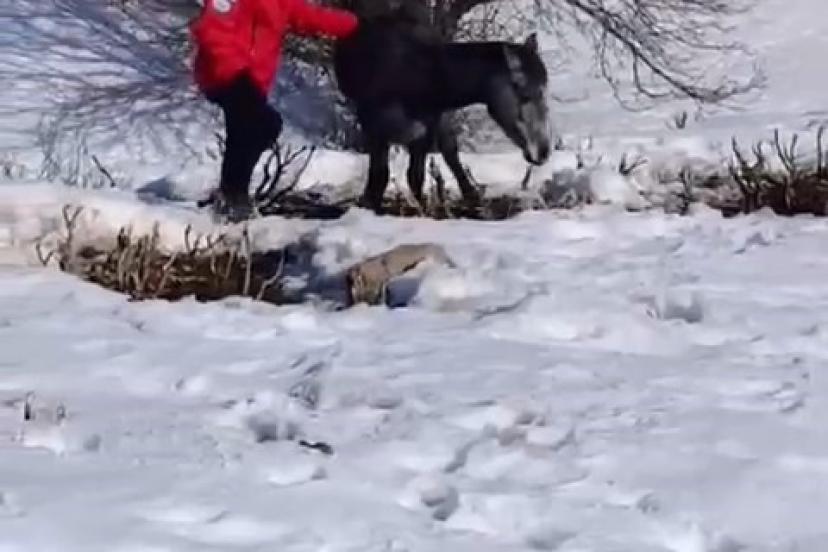 Duyarlı iki vatandaşın ihbarı üzerine, Bingöl’ün Solhan ilçesi Beşevler Mezrası kırsalında yer yer 1 metreyi bulan kar örtüsü altında kurt sürüsünün saldırısına uğrayarak yaralanan at için AKUT Bingöl ekibi harekete geçti. AKUT Bingöl Operasyon Merkezi’nden gerekli teknik ekipmanlar ve kar motoru alınarak yola çıkıldı. Bingöl merkeze yaklaşık 57 kilometre uzaklıkta bulunan olay bölgesine, arazi aracıyla yolun izin verdiği son noktaya kadar ulaşıldı. Ardından kar motoru ile ilerlenerek atın mahsur kaldığı bölgeye varıldı. Yer yer 1 metreyi bulan kar kalınlığı ve engebeli arazi şartlarına rağmen ekip, yaklaşık bir saat süren zorlu bir mücadelenin ardından yaralı atı bulunduğu noktadan alarak yürütmek suretiyle köy yoluna ulaştırdı.