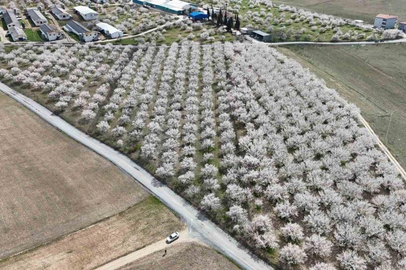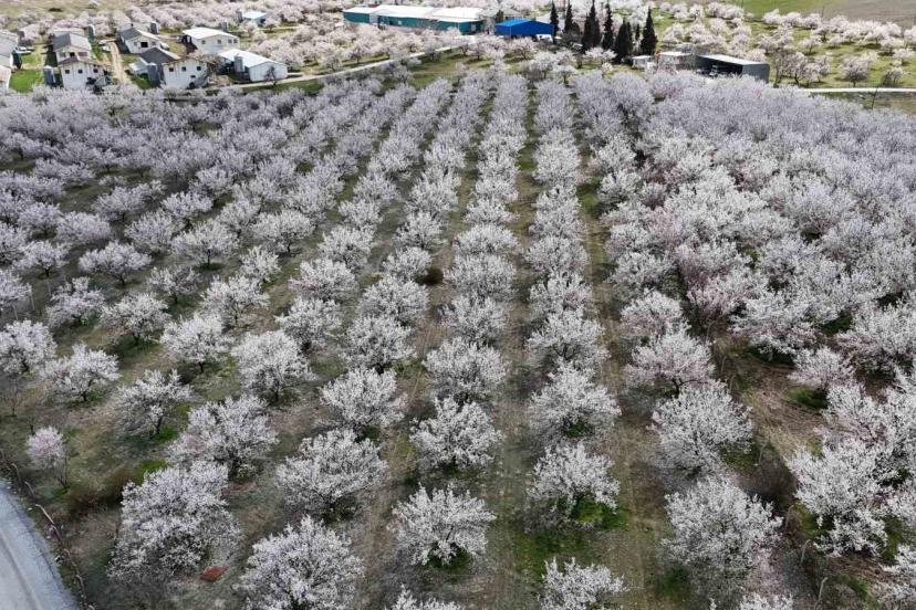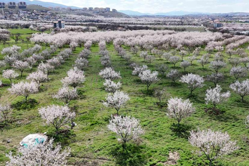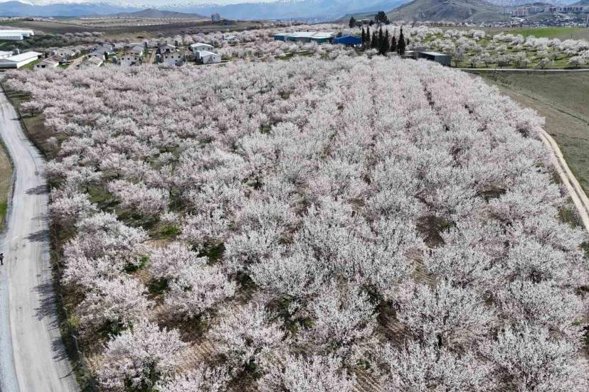 Malatya’da çiçek açan kayısı bahçeleri havadan görüntülendi