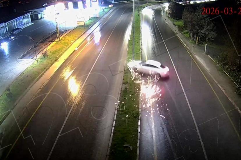 Malatya’da sürücüsünün kontrolünden çıkan otomobil orta refüje çarparak savruldu. Kaza anı güvenlik kameralarına yansıdı.