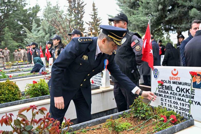 Cumhuriyet Meydanı’nda düzenlenen çelenk sunma töreniyle başlayan program, şehitlikte devam etti. Malatya Büyükşehir Belediyesi Meclis Başkan Vekili Ramazan Ayhan, İl Emniyet Müdürü Kayhan Ay, Malatya POMEM Müdürü Murat Aslan, Özel Harekat Bölge Müdürü Murat Daş, il protokolü, emniyet personeli ve vatandaşların katıldığı törende, şehitler kabirleri başında dualarla anıldı.