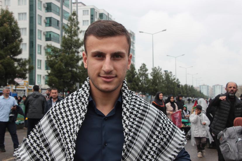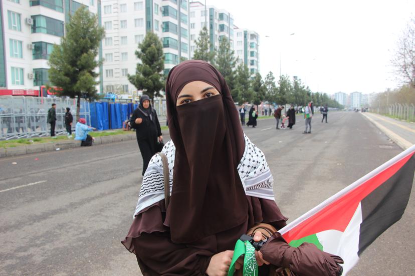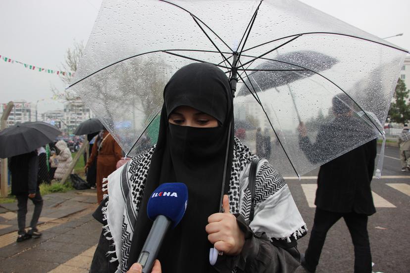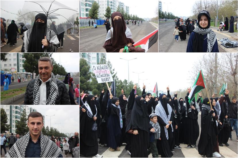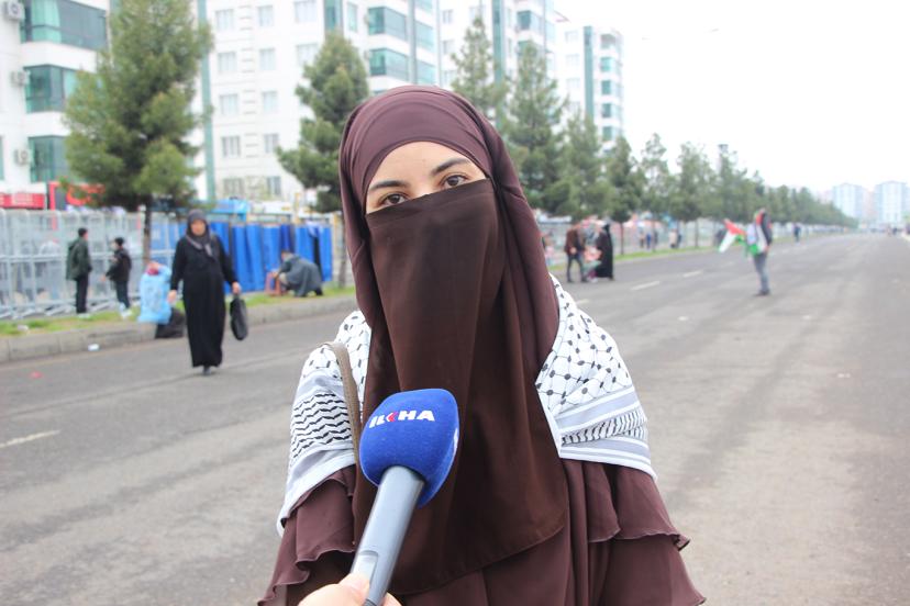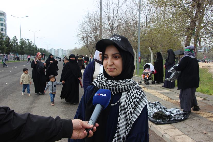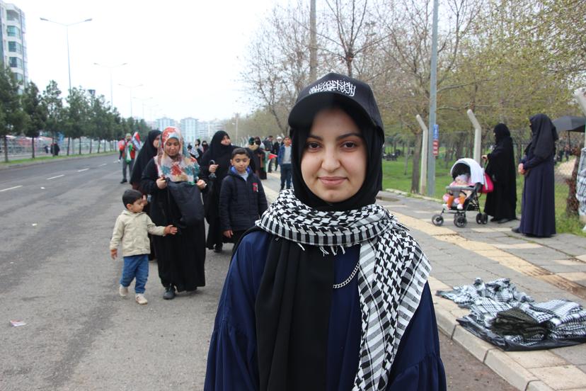 Ergani'den Mevlid-i Nebi etkinliğine katılan Hanife Dursun, "Özellikle Peygamber Efendimiz, Filistin için buraya katıldım. Eğer Peygamberimiz şu an burada olsaydı. O'na orduları hazır bir tek komutanımız eksik diyecektim. Ve buradakilerle Filistin, Gazze'yi savunmaya devam edeceğim." dedi.