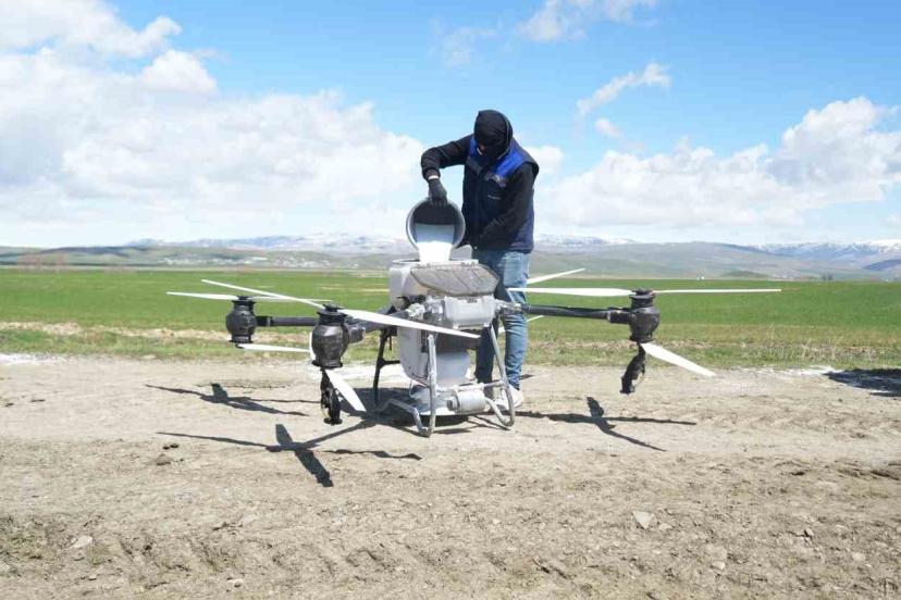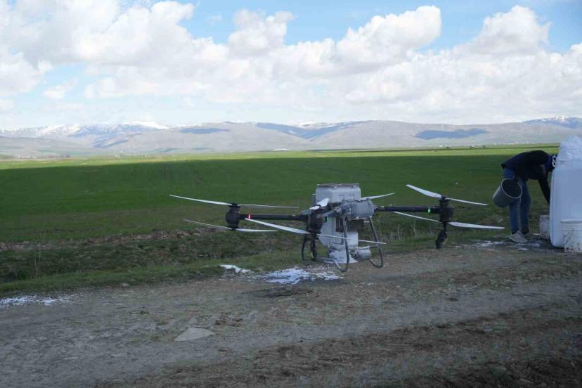 Muş’ta baharın gelişiyle birlikte tarım faaliyetleri hız kazanırken, 42 bin dönümlük arazi ise insansız hava araçları ile gübrelendi.