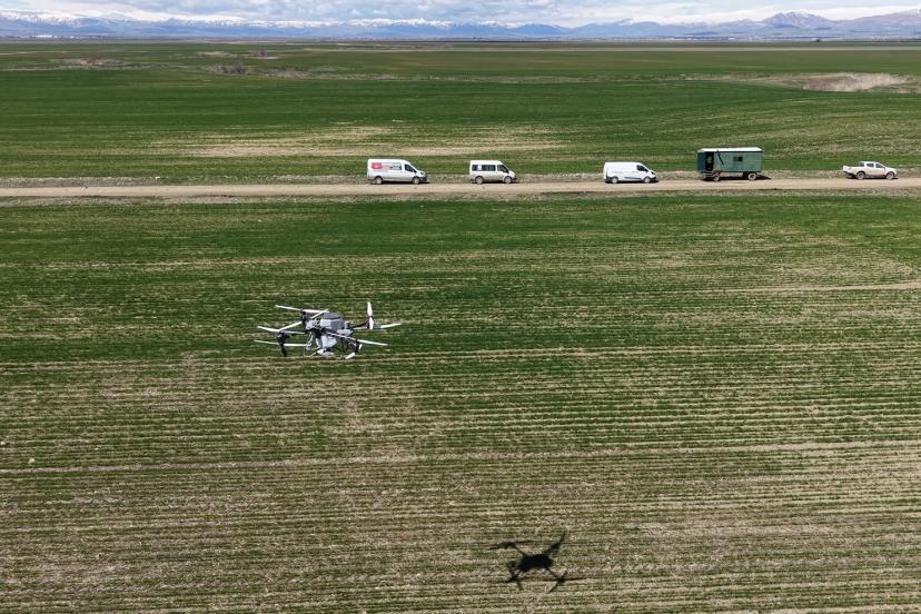 Muş’ta bahar mevsiminin etkisini göstermesiyle birlikte tarımsal çalışmalar yoğunlaştı. Modern tarım tekniklerine yönelen üreticiler, verimliliği artırmak amacıyla teknolojiden faydalanmaya başladı. Bu kapsamda Alparslan Tarım İşletmesine ait geniş arazilerde gübreleme çalışmaları dron desteğiyle gerçekleştirildi.