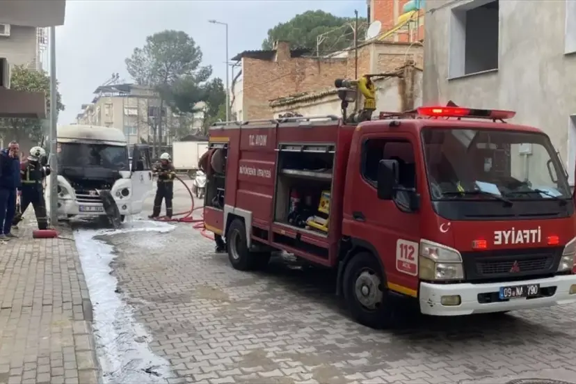 Aydın'ın Nazilli ilçesinde park halindeyken alev alan minibüs hasar gördü. İtfaiye ekipleri yangına müdahale ederek yangını kısa sürede söndürdü.