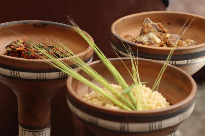 Usta şef menüsünde, Şanlıurfa'nın doğal buğdaylarından hazırlanan ekmek, yanık sadeyağ, koyun yoğurdu, mevsim otları, buğday lapası, kuzu kemikli et, az kavrulmuş Karacadağ pirincinden yaptığı yemekleri Karahantepe'de ilk kez sundu.
