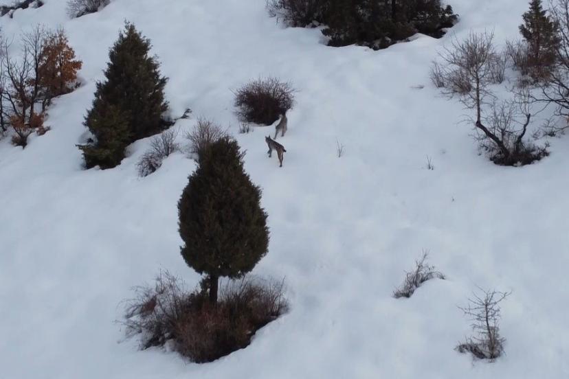 Nesli tükenme tehlikesi altında olan, kedigiller familyasına ait bir tür olan ve ormanın hayaleti olarak bilinen vaşak, çift olarak Erzincan’ın Refahiye ilçesine bağlı Kırkbulak köyü civarında karlı arazide Ozan Türkmen tarafından drone ile görüntülendi.