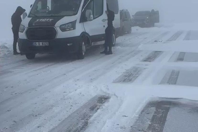 Erzurum-Tekman kara yolu Palandöken geçidinde kar ve tipi nedeniyle onlarca araç mahsur kaldı.