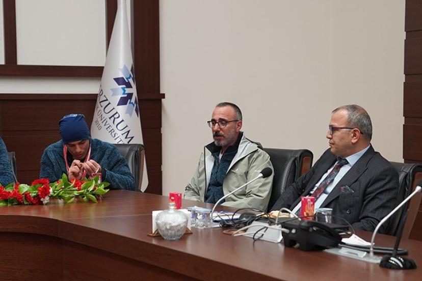 Avusturya’dan dört madalya ile Erzurum’a dönen Bingül kardeşler için havalimanında karşılama töreni düzenlenirken alanda ETÜ Rektörü Prof. Dr. Bülent Çakmak’ın yanı sıra çok sayıda akademisyen ve öğrenci yer aldı.