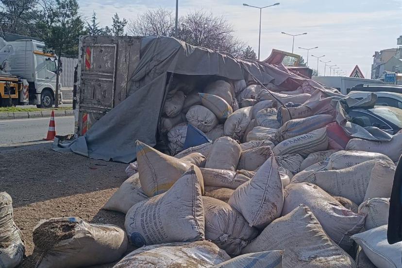 Kaza, Konak Mahallesi Diyarbakır Caddesi'nde meydana geldi. Edinilen bilgilere göre, 63 AEE 079 plakalı tır, sürücüsünün direksiyon hakimiyetini kaybetmesi sonucu devrildi.