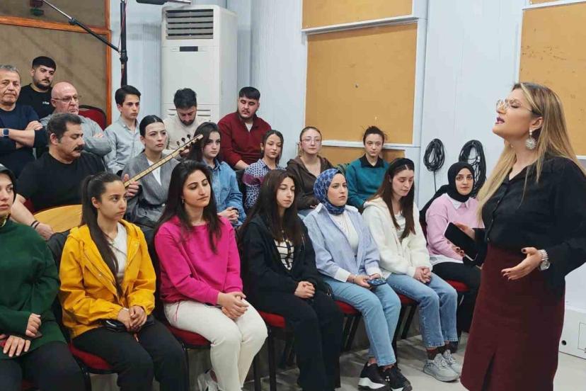 Samimi bir atmosferde gerçekleşen program, soru-cevap bölümünün ardından ustalar ve gençlerin birlikte seslendirdiği türkülerle sona erdi.