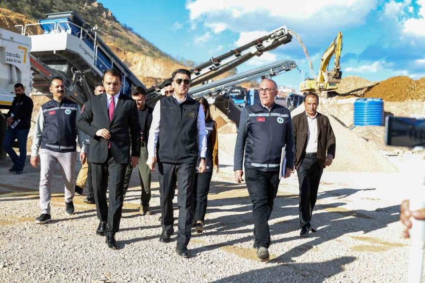2026 Yılı Bütümlü Sıcak Asfalt (BSK) Yol Yapım Faaliyetleri kapsamında Çiçekli Köyü mevkisinde kurulan kırma-eleme ve yıkama malzeme ocağında incelemelerde bulunan Tunceli Valisi Şefik Aygöl, " 2026 yılı Bütümlü Sıcak Asfalt yol yapım faaliyetlerimiz kapsamında Çiçekli Köyü’nde kurduğumuz bu tesis, saatte 180 ile 240 ton, yıllık ise yaklaşık 400 bin metreküp üretim kapasitesiyle yol yapım çalışmalarımızda ihtiyaç duyduğumuz hammaddenin ana kaynağı olacaktır. Yaz dönemi için belirlediğimiz 120 kilometrelik sıcak asfalt hedefimiz doğrultusunda, 54 köyümüze doğrudan, 37 köyümüze ise dolaylı olmak üzere toplam 91 köyümüzü bu hizmetle buluşturmak için sahadaki planlamalarımızı titizlikle sürdürüyoruz. Tüm bu süreçleri ve malzeme ocağımızdaki çalışmaları yerinde inceleyerek ekiplerimizle eş güdüm içerisinde hareket ediyor, faaliyetlerimizi doğaya ve çevreye karşı gerekli tüm duyarlılığı göstererek, aldığımız tedbirlerle kararlılıkla yürütüyoruz" dedi.