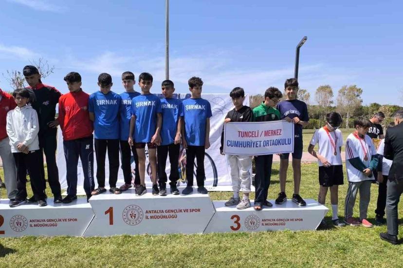 Antalya’nın Serik ilçesinde 11-13 Nisan 2026 tarihleri arasında düzenlenen Türkiye Triatlon Final Yarışması’nda Tunceli Merkez Cumhuriyet Ortaokulu öğrencileri başarıya imza attı. Tunceli Merkez Cumhuriyet Ortaokulu yıldız erkekler ve küçük kızlar kategorilerinde Türkiye üçüncüsü oldu.