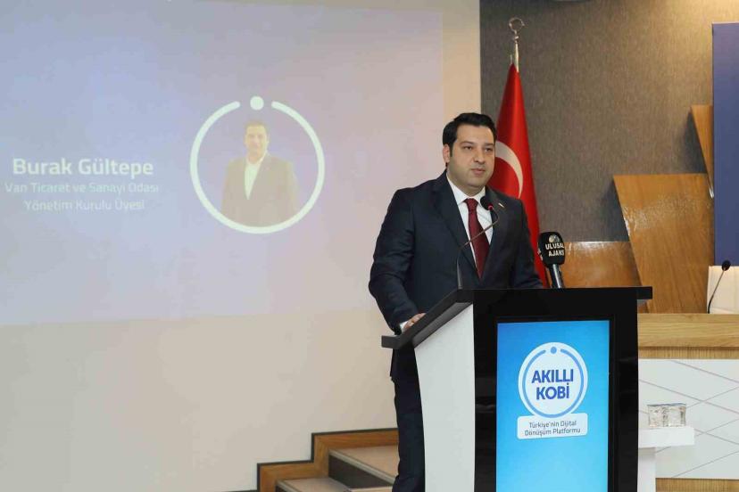 "KOBİ’ler, ülkemiz ekonomisinin bel kemiğidir" diyerek konuşmasını sürdüren Burak Gültepe, "Üreten, istihdam sağlayan, risk alan ve Türkiye’nin büyümesini omuzlayan en güçlü yapıdır. Kabul etmeliyiz ki tüm bu emeğin, harcadığımız mesainin ve ortaya koyduğumuz çabanın karşılığı olan para bile artık dijitalleşti. İşte bu yeniçağda işletmelerin varlığını sürdürebilmesi; yalnızca çok çalışmasına değil, dijital dönüşüme ayak uydurarak daha akıllı, daha verimli ve daha yenilikçi olmasına bağlıdır. Tam da bu noktada Akıllı KOBİ yaklaşımı devreye giriyor. Dijital dönüşüm; sadece teknolojiye yatırım yapmak değil, aynı zamanda zamanı doğru kullanmak, maliyetleri azaltmak, rekabet gücünü artırmak ve dünyaya daha güçlü açılmaktır. Bizler Van Ticaret ve Sanayi Odası olarak üyelerimizin yalnızca bugünün değil, yarının da güçlü işletmeleri olması için çalışıyoruz. Çünkü inanıyoruz ki güçlü KOBİ, güçlü şehir demektir. Güçlü şehir ise güçlü Türkiye demektir. Bugün burada atılacak her adım, öğrenilecek her bilgi ve kurulacak her iş birliği; işletmelerimizi geleceğe bir adım daha yaklaştıracaktır. Unutmayalım; değişime ayak uyduranlar ayakta kalır, değişime yön verenler ise geleceği şekillendirir. Bu vesileyle emeği geçen herkese teşekkür ediyor, programın tüm katılımcılar için verimli ve hayırlı olmasını diliyorum" ifadelerini kullandı.