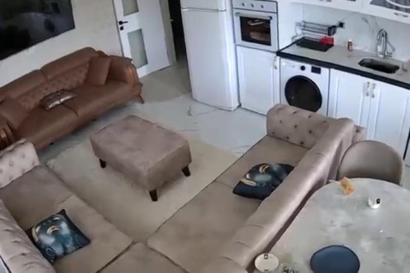 Van’ın Tuşba ilçesinde meydana gelen 5.2 büyüklüğündeki deprem anında yaşananlar bir evin güvenlik kamerasına saniye saniye yansıdı. Görüntülerde deprem anında sarsıntının şiddetiyle eşyaların beşik gibi sallandığı görülüyor.