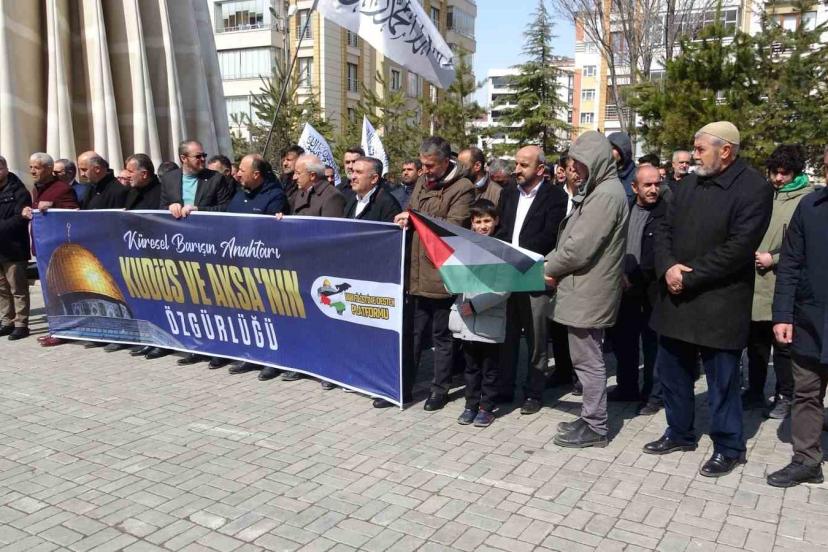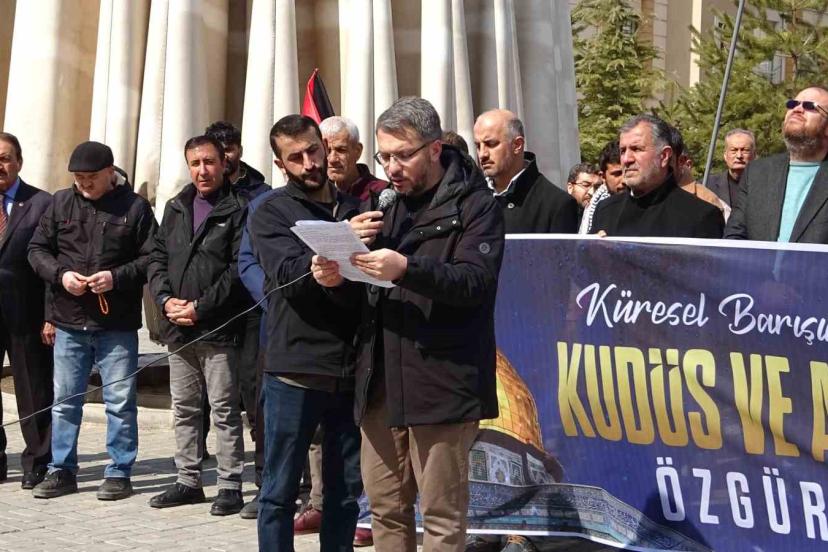 Yukarı Norşin Camii önünde Cuma namazı çıkışında düzenlenen açıklamayı Van Filistin’e Destek Platformu Dönem Sözcüsü Ahmet Faruk Çevik okudu. Kudüs’ün yalnızca Filistin halkının değil, bütün Müslümanların ve bütün insanlığın ortak mirası olduğunu ifade eden Çevik, Mescid-i Aksa’nın ise Müslümanların ilk kıblesi ve mukaddes mabedlerinden olduğunu söyledi. Çevik, "Ancak bugün Kudüs, Mescid-i Aksa ve Gazze; Siyonist işgal rejiminin sistematik saldırıları ve yayılmacı politikaları altında ağır bir kuşatma yaşamaktadır. İsrail’in Gazze’de başlattığı ve bugün Lübnan’a, Suriye’ye, Yemen’e ve İran’a yaydığı çatışma süreci, asla bir güvenlik meselesi değildir. Bu, ‘Arz-ı Mev’ud’ hezeyanıyla bölge ülkelerini zayıflatma, parçalama ve köleleştirme operasyonudur. Siyonist akıl, kendi güvenliğini komşu ülkelerin yıkımında aramakta, attığı her adımda dünya barışının altına dinamit döşemektedir. Bu saldırganlık, İsrail’in güvenliği bahanesi altında bütün bölgeyi dizayn etmeyi hedefleyen emperyal bir projeye dönüşmüş ve dünya barışını doğrudan tehdit eden bir boyuta ulaşmıştır. Şurası açıktır ki mesele sadece Filistin meselesi değildir. Asıl mesele İslam coğrafyasının tüm direniş hatlarını kırmayı hedeflemektedir" dedi.