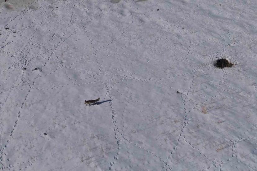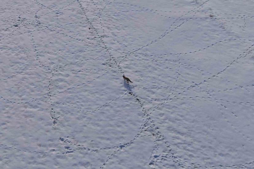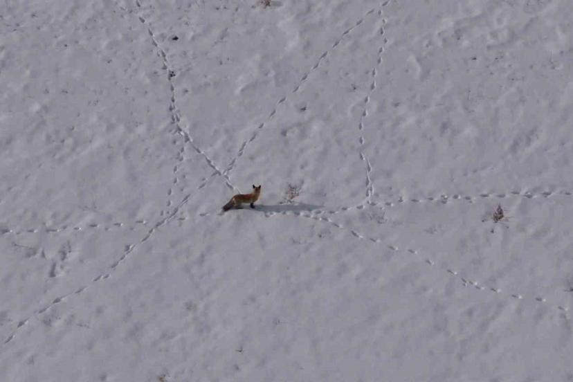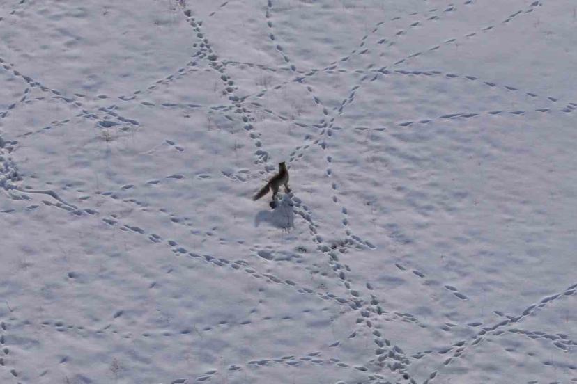 Van’ın karla kaplı yüksek kesimlerinde aç kalan bir tilkinin, avını yakalamak için sergilediği ustalık ve kararlılık dron kamerasına yansıdı.