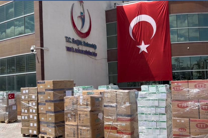 Van başta olmak üzere çevredeki illerde bulunan sağlık kuruluşlarından temin edilen ilaç, serum, sarf malzemeleri, tıbbi cihazlar, sedyeler ve oksijen tüpleri, Van İl Sağlık Müdürlüğünün koordinasyonunda kolilere konarak tır'lara yüklendi.